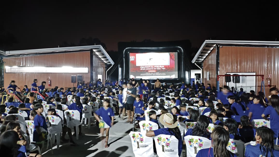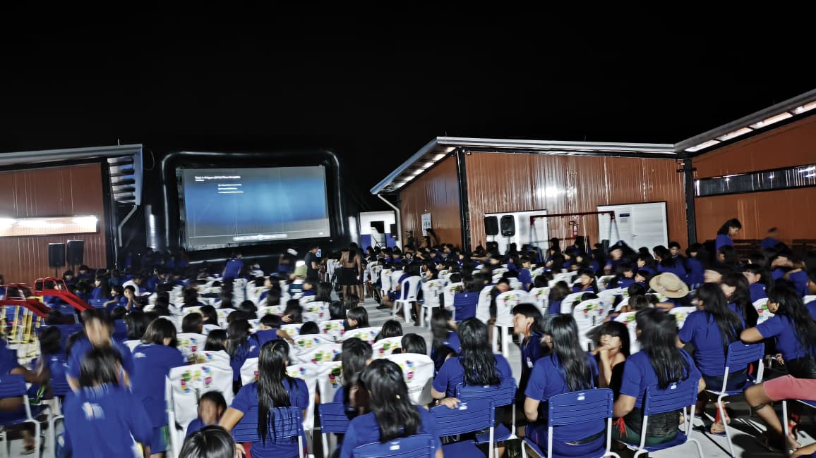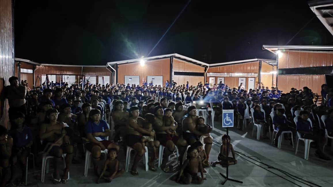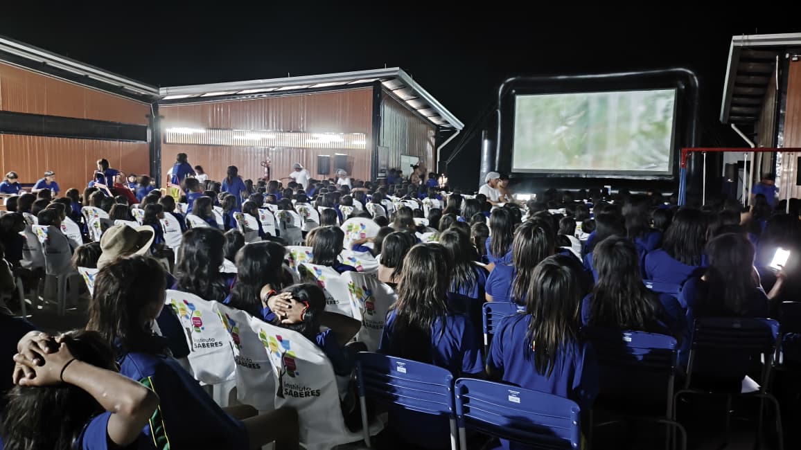 Mais de 800 pessoas se reuniram sob o céu estrelado para assistir, em uma grande celebração de cultura e pertencimento, aos filmes Tainá – Uma Aventura na Amazônia e o curta-metragem Expedição Xingu: Um Rio, Um Povo, Uma Floresta.