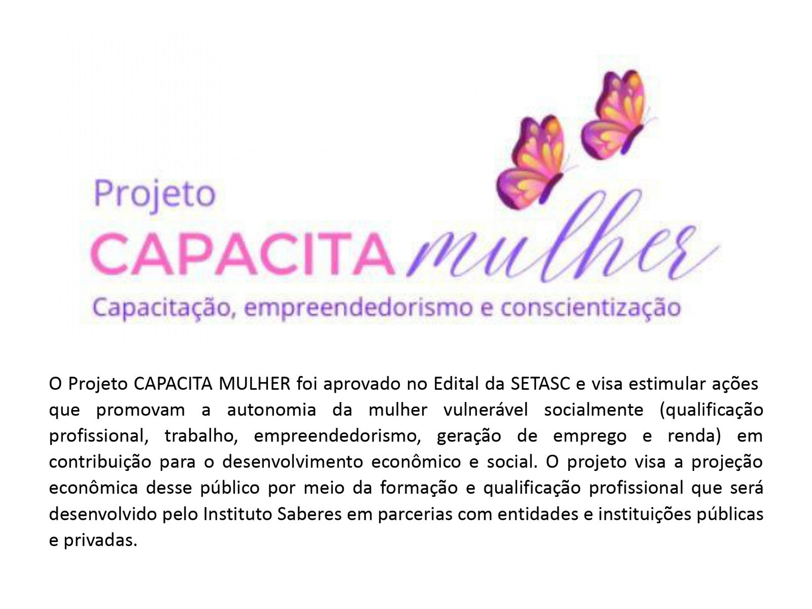 Projeto: Capacita Mulher – com oficinas de culinária, artesanato, beleza e palestras online.