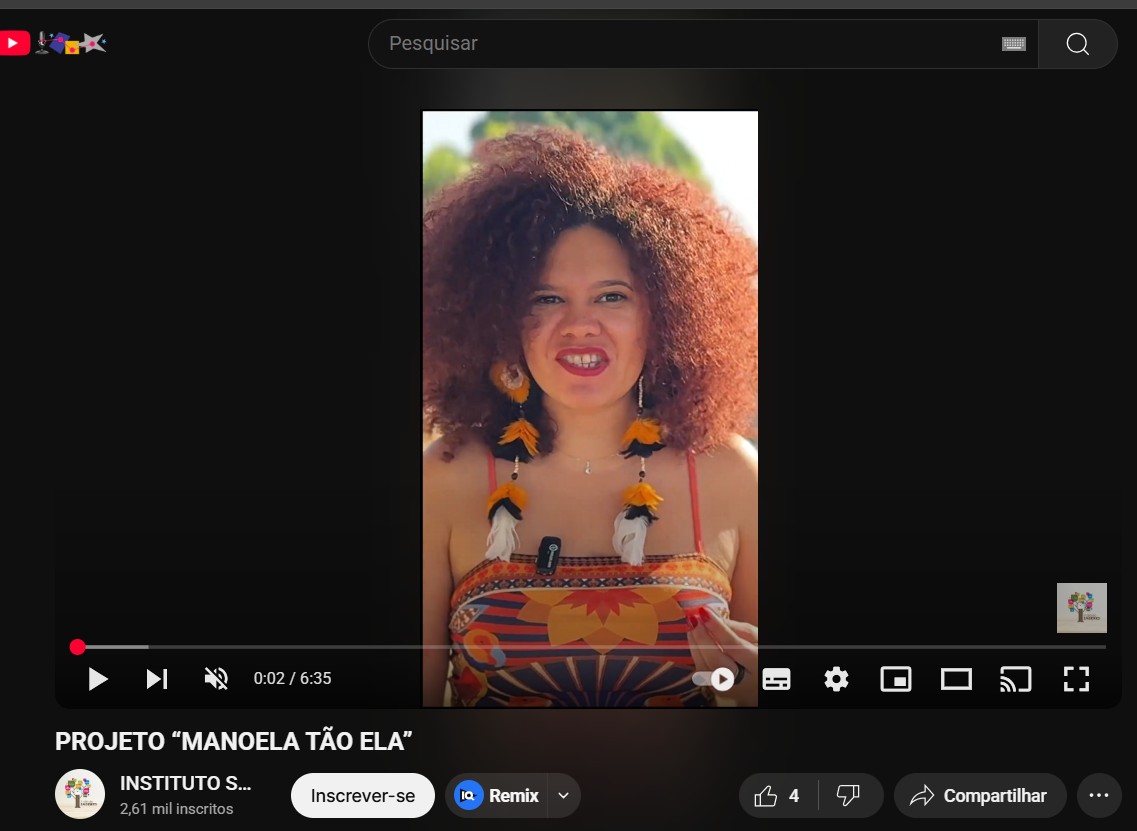 Link de acesso: O livro nasceu da necessidade de maiores representações para crianças pretas. Nesse contexto, a co-proponente escreveu um livro para crianças, trazendo ao centro da narrativa os sentimentos desencadeados frente a situações de racismo. A protagonista desse livro, é uma menina preta, uma criança como tantas que existem no Brasil. Manuela é uma criança como tantas outras cheia de sonhos e desejos, tem uma família que a ama e ensina como a diferença faz parte do cotidiano.